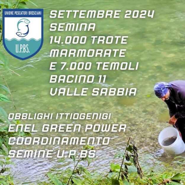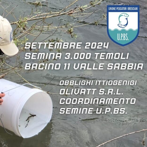 ALTRI 3.000 TEMOLI IMMESSI NEL BACINO PESCA 11 – VALLE SABBIA FIUME CHIESE – a sostegno della fauna ittica del Fiume Chiese. Le operazioni di semina sono state coordinate da U.P.BS. e riguardavano gli Obblighi ittiogenici del derivatore – OLIVATT S.r.l. che ringraziamo per la condivisione dei progetti di semina. Progetto Autorizzato da Regione Lombardia…